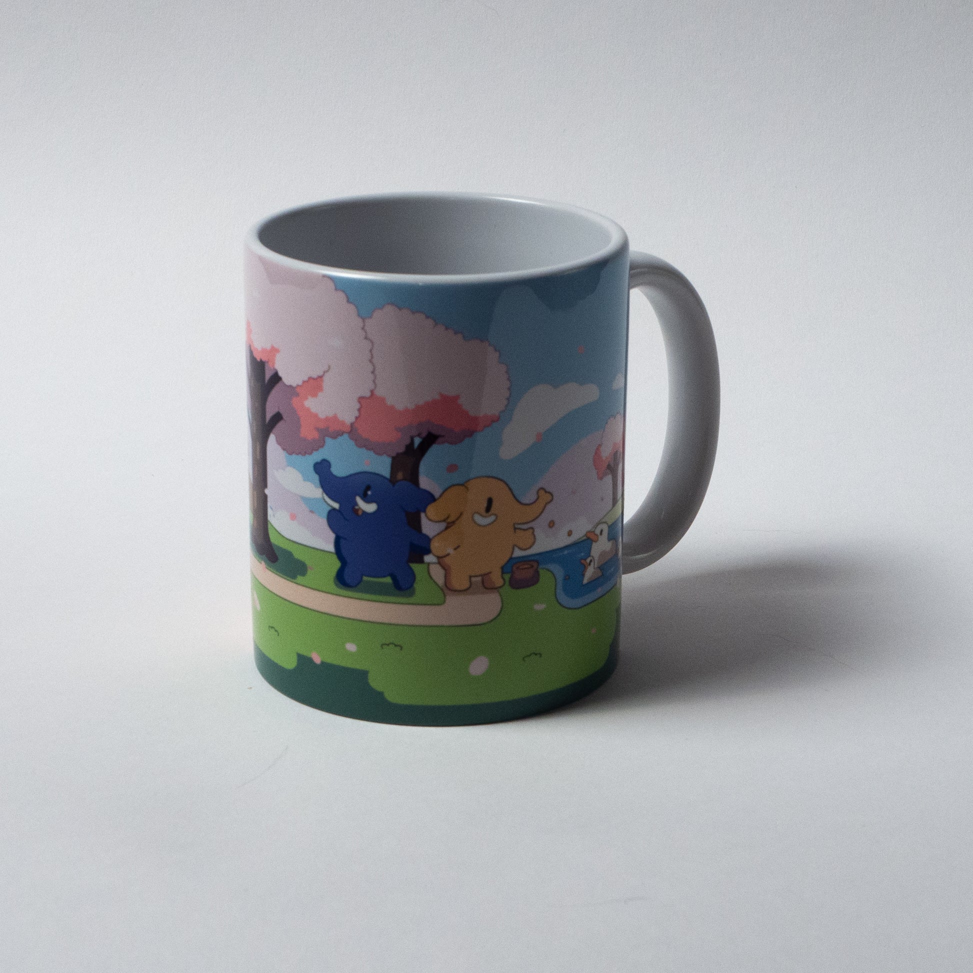 When the flowers bloom and the birds start singing, enjoy your favourite beverage from this spring-themed ceramic mug featuring merry elephants having a stroll in the park. Most importantly, our mugs aren't just cute—they are comfortable to hold and drink from. And they are dishwasher-safe, too!